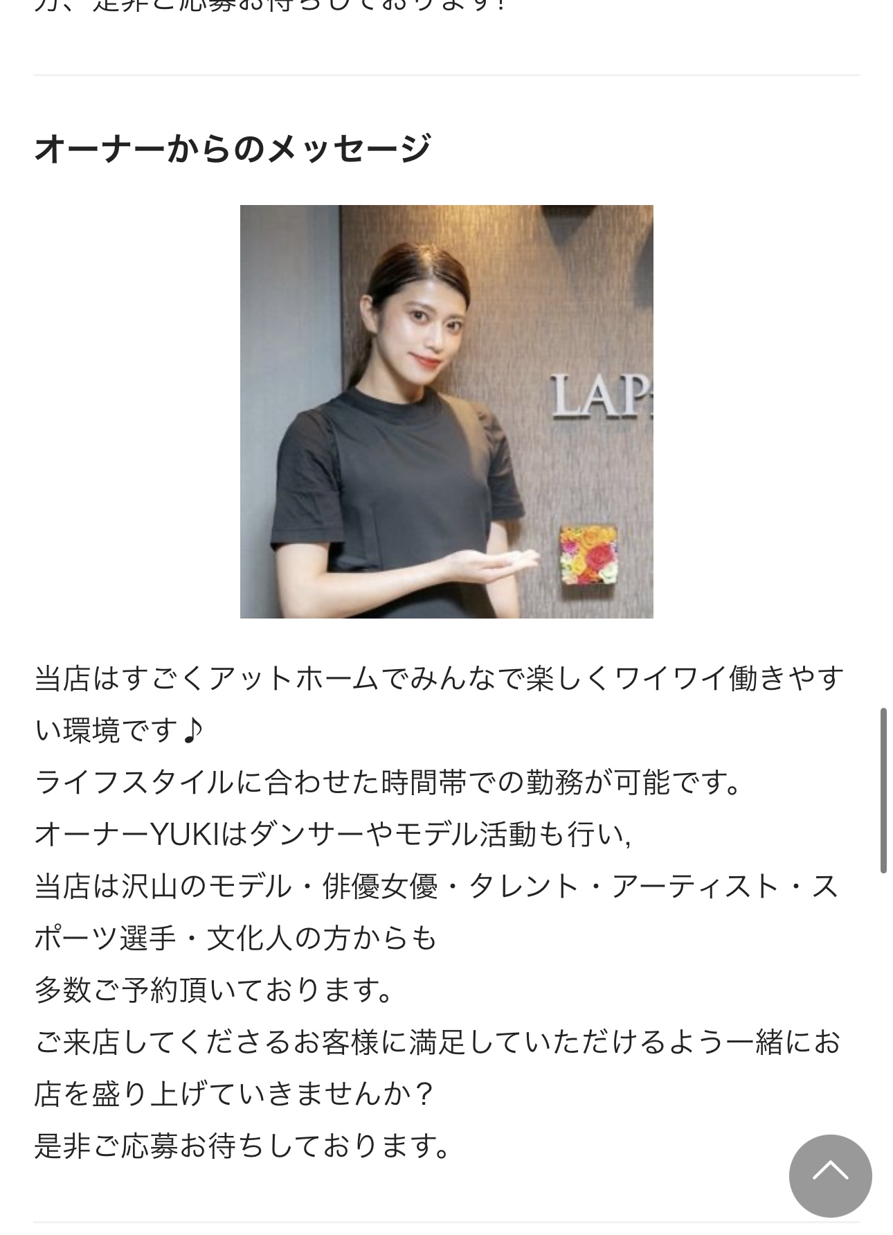 これから働くことを考えている人はこの企業に行かない方がいい。求人内容は真っ赤な嘘、10時間以上拘束させられた上5000円も稼げないことが多い。最低保証もつけると言っておきながら肝心な説明を省き、結局最低保証をつけられることはなかった