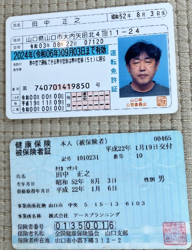 【免許証番号】第740701419850号 交付日 令和03年08月22日 07120 準中型」