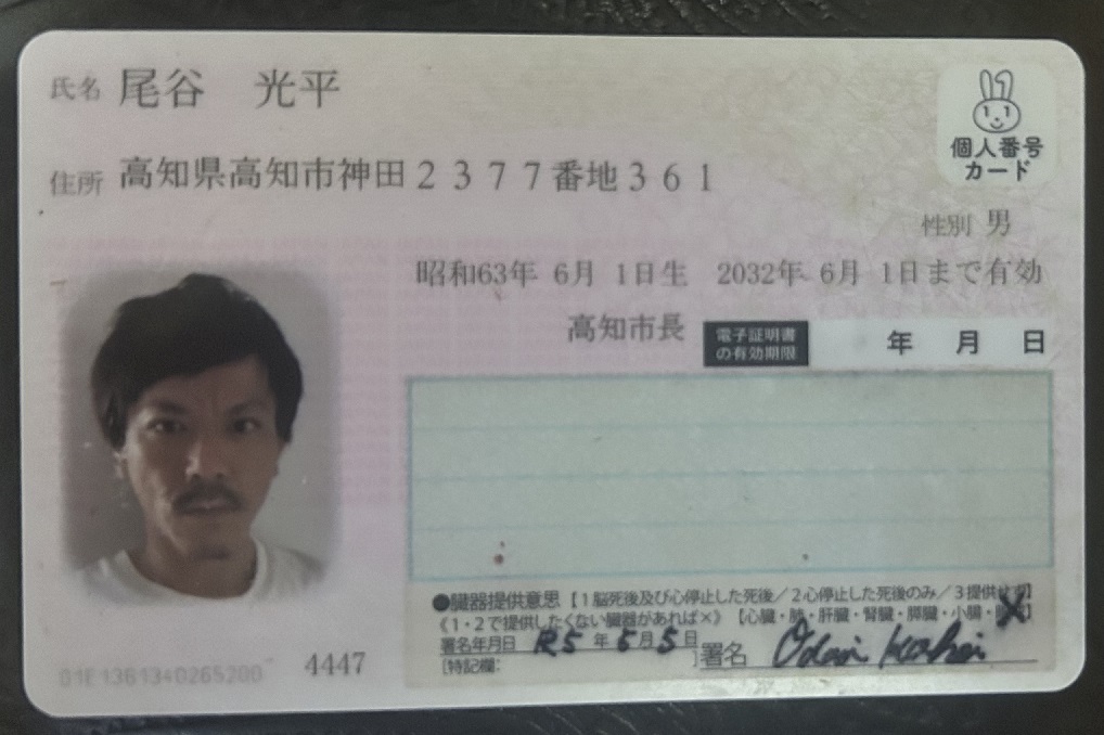 氏名 尾谷光平 / オダニコウヘイ 尾谷 光平
