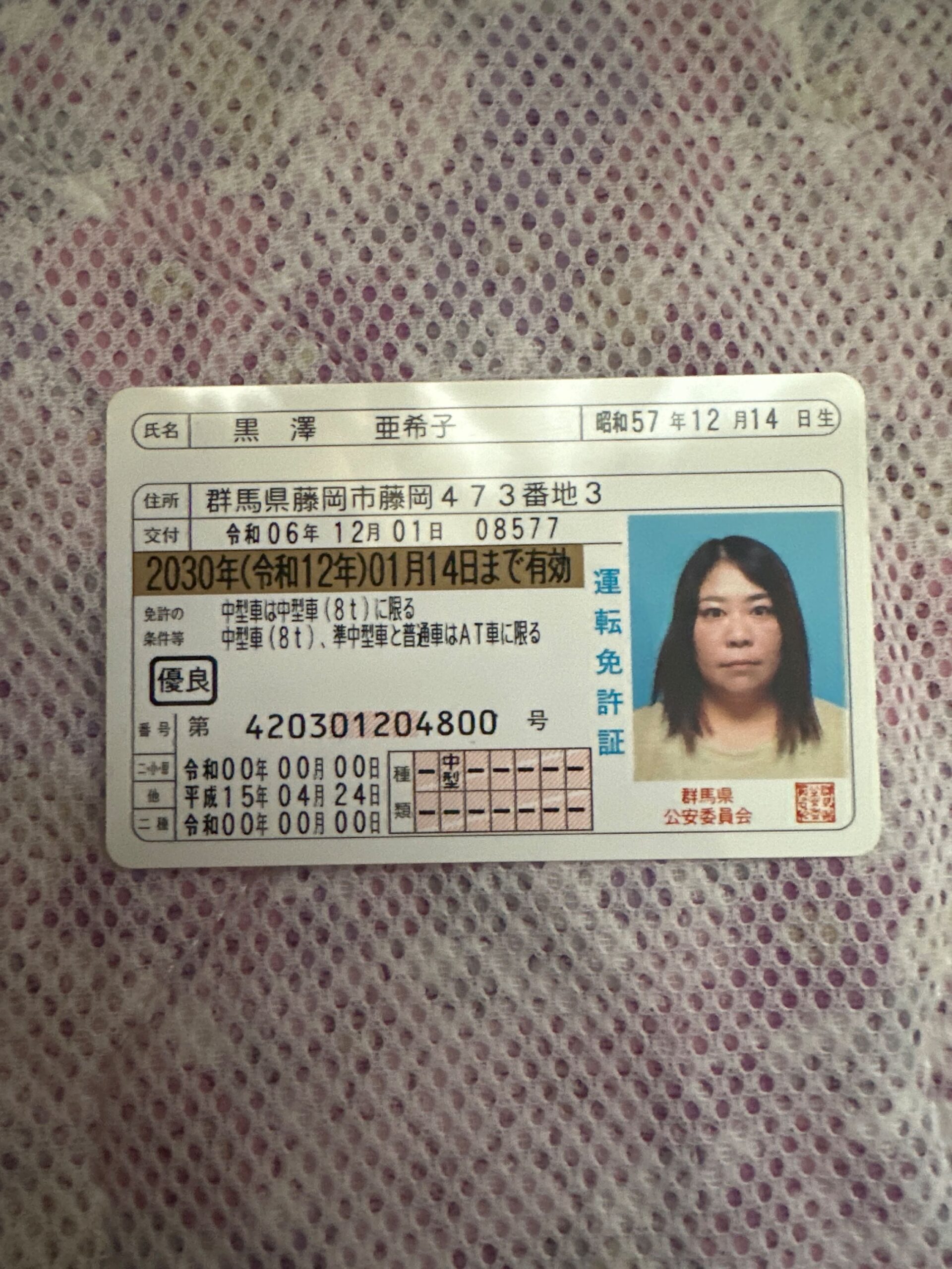 名前:黒澤亜希子 フリガナ:クロサワアキコ 住所:群馬県藤岡市藤岡473-3 生年月日:1982-12-14 電話番号:09010138401 お勤め先名:安盛保育園 お勤め先住所:埼玉県 上里町神保原2-10-15 お勤め先電話番号:0495338877 緊急連絡先1:09013450296 緊急連絡先2:09063954235 投稿ナビゲーション